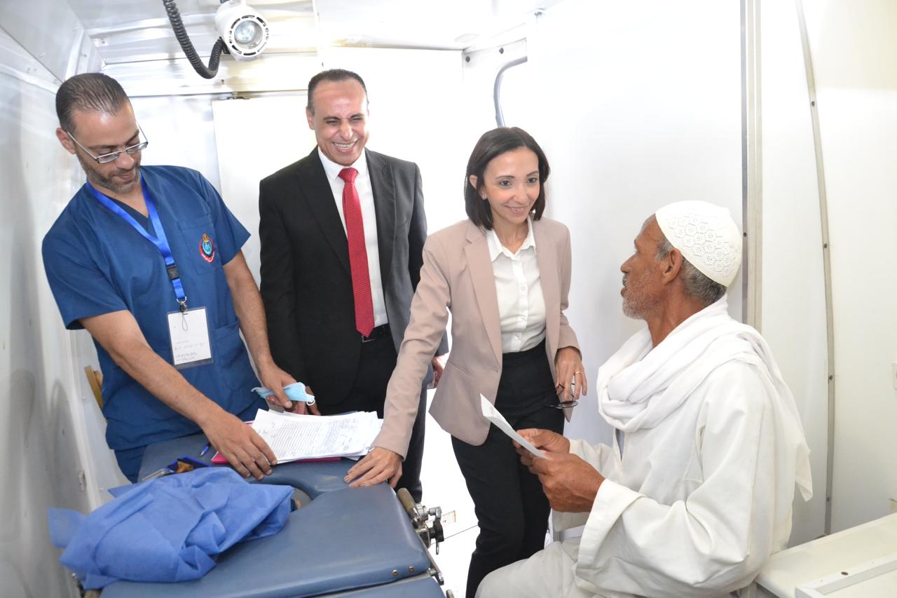 وتضم القافلة مختلف التخصصات منها (باطنة، أسنان- أطفال، عظام، جراحة، جلدية، نسا، رمد وتنظيم الأسرة، والأسنان، أشعة)، بالإضافة إلي معملى الدم والطفيليات ولجنة التقارير الطبية والإحالة والتسجيل الطبى والتسجيل الدوائى والكشف المبكر للضغط والسكر، والتثقيف الصحى، كما يتم إجراء استكتاب لامتحانات محو الأمية بالتنسيق مع الهيئة العامة لتعليم الكبار.