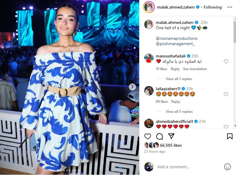 تفاعل متابعي الفنانة ملك أحمد زاهر مع أحدث إطلالتها التى شاركت متابعيها بها عبر حسابها الشخصي بموقع الإنستجرام، وجاءت أبرز التعليقات مؤيده لها رصدنا أبرزها من الفنانة منة فضالي: "ايه الحلاوه دي يا مالوكه".