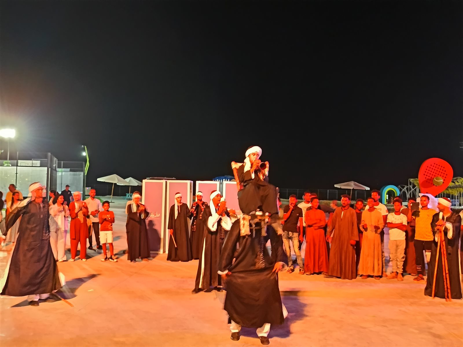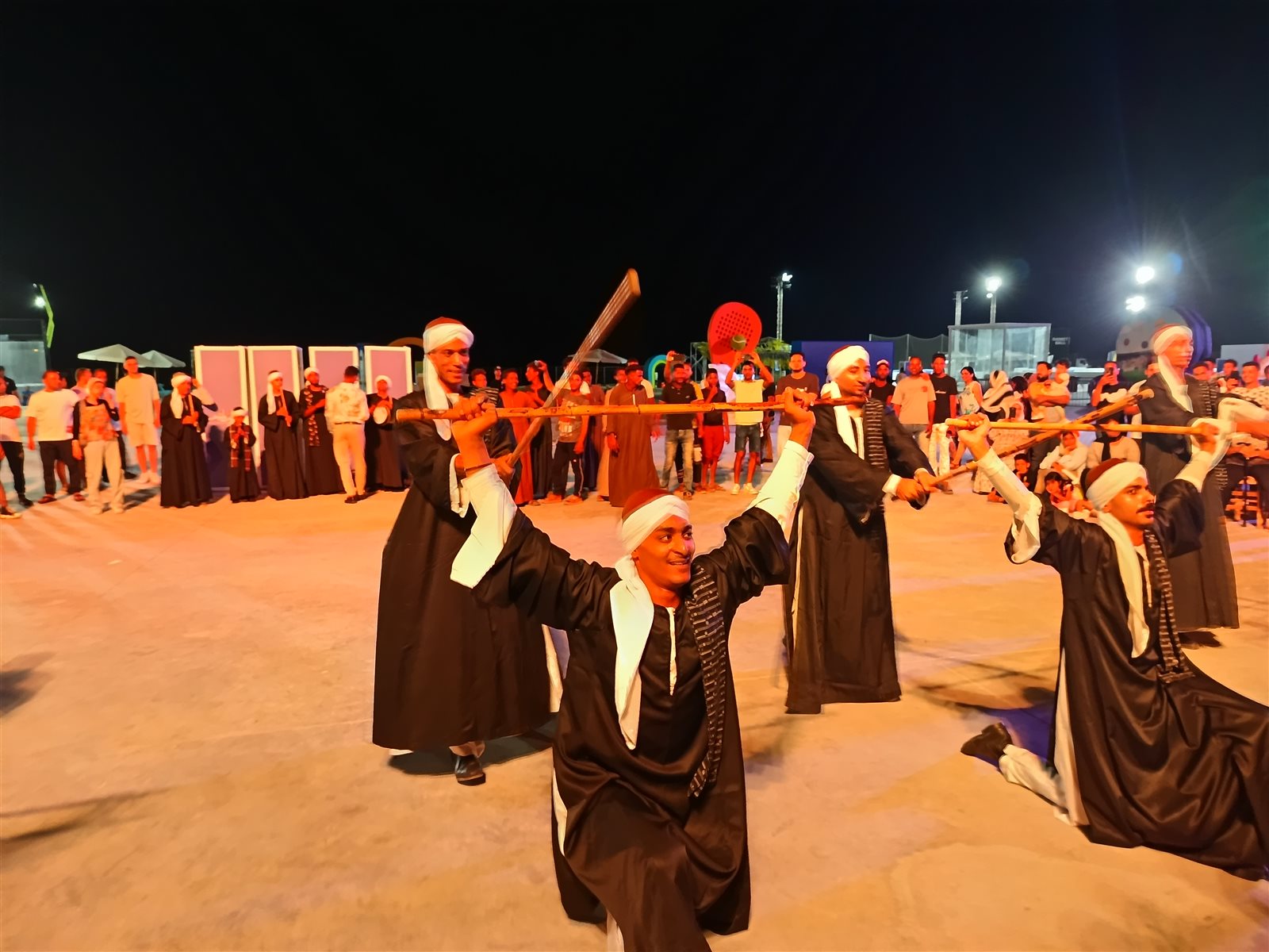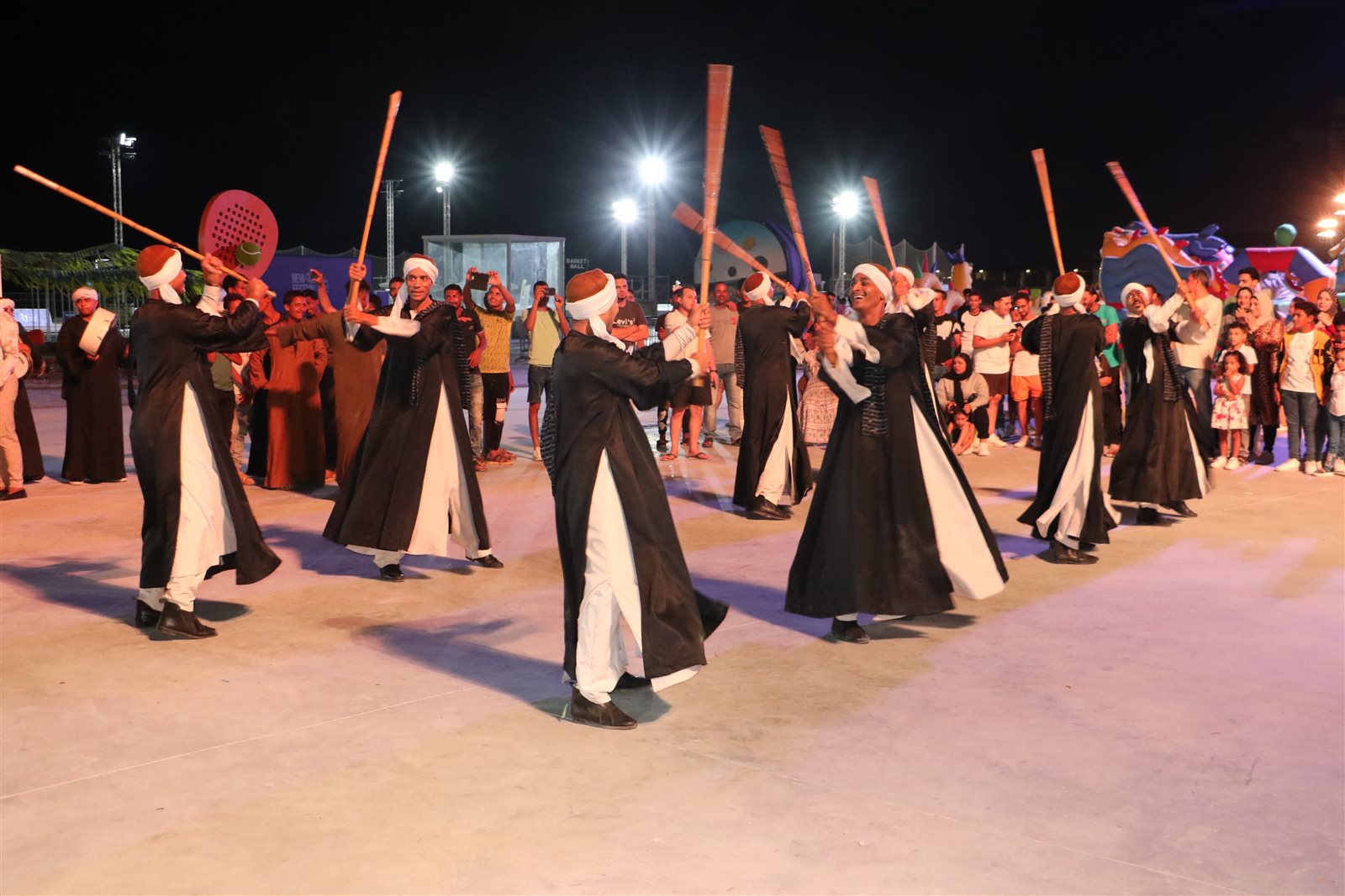 وعلى الممشى السياحي بمدينة العلمين الجديدة قدم فنانو فرقة ملوى للفنون الشعبية، بقيادة المدرب محمد شحاته الرقصات التقليدية الشعبية باستخدام الشوم والعصا والتحطيب وعلى أنغام المزمار وضربات الطبل البلدي، وسط إقبال كبير وفرحة الجميع.