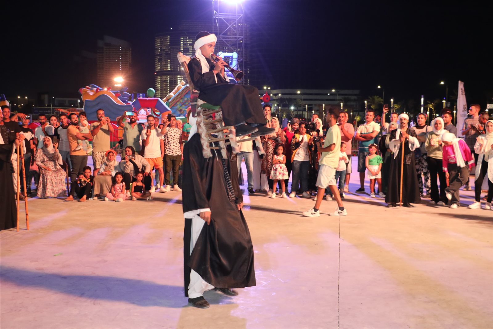 أشعل الزمار الصغير آدم احمد الأجواء خلال عزفه بالمزمار، وحمله أحد أعضاء الفرقة على كرسى ليواصل الرقص ، وسط احتفال الجماهير به.