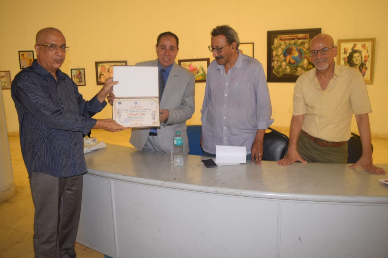 أما الجائزة الرابعة فقد ذهبت للفنان "حسنى عباس"، وذهبت الجائزة الخامسة للفنان "عبد الرحمن بكر"، مع تسليمهما شهادة تقدير .