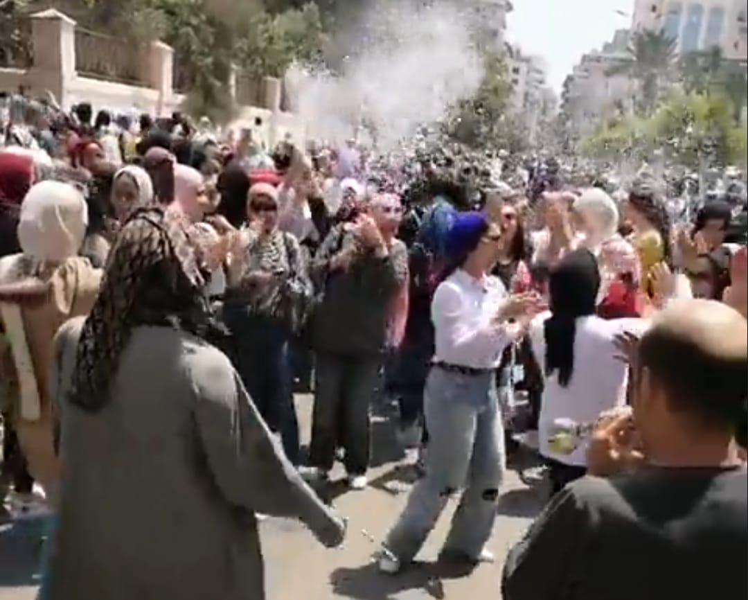 واحتفلت الطالبات وأولياء أمورهن بالرقص والزغاريد، ورش "ثلج" الحفلات.