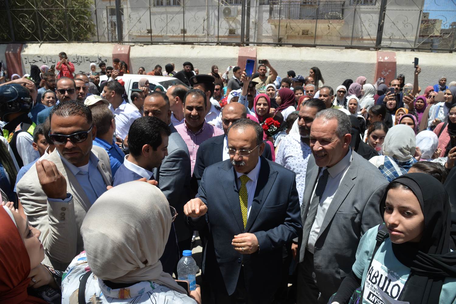 حيث حرص المحافظ على تفقد بعض لجان الامتحانات، واطمئن على هدوء اللجان وانتظامها، كما التقى المحافظ بعض الطلاب عقب انتهاء الامتحان خارج اللجان معبرين عن سعادتهم وفرحتهم بسهولة الامتحان في مادتي الأحياء والفلسفة والمنطق وسط مشاركة من أولياء الأمور خارج اللجان الذين استقبلوا المحافظ بإطلاق الزغاريد وتوزيع الورود على الطلاب والطالبات.