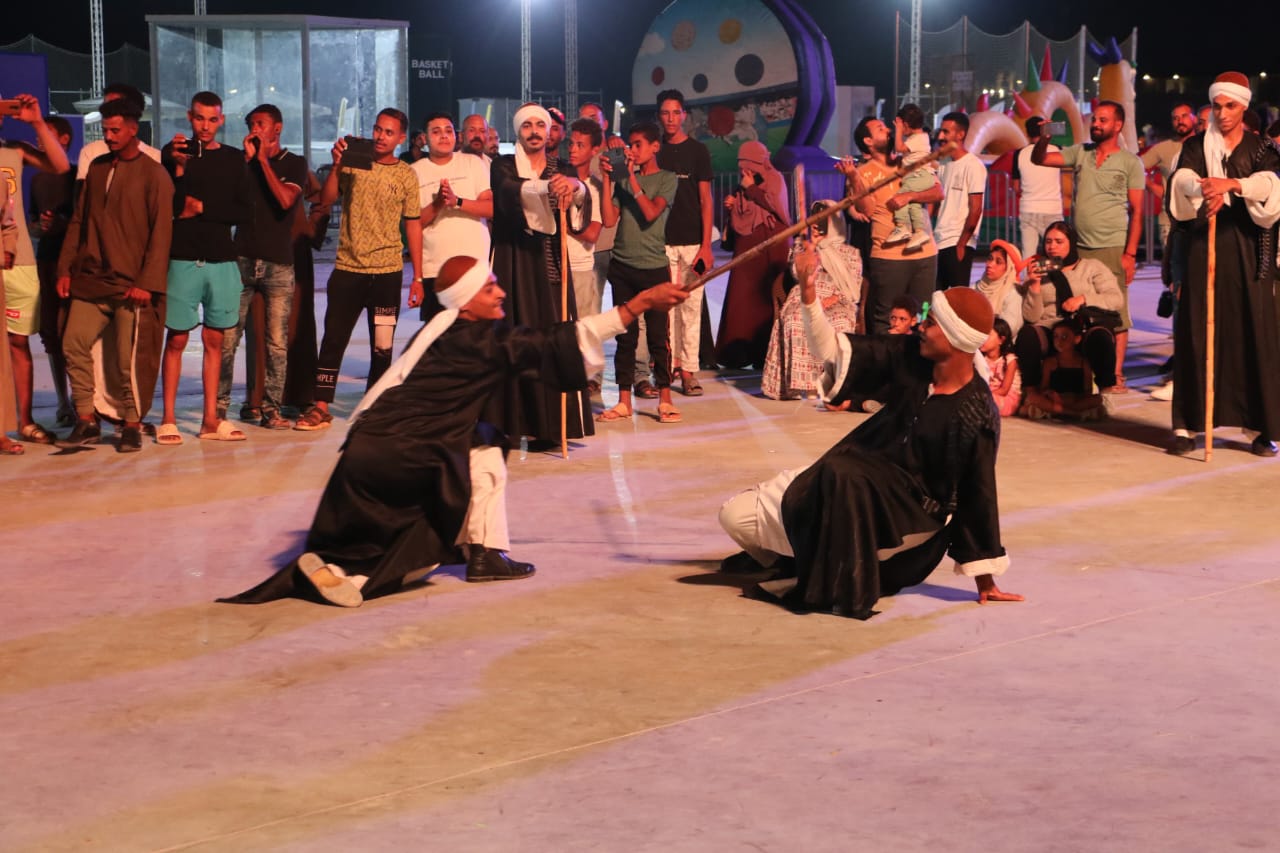 وضمن عروض الفلكلور الصعيدي قدمت فرقة ملوي للفنون الشعبية للمدرب محمد شحاته، عروضها الفنية برقصات "شعبيات، التحطيب" بمصاحبة آلات المزمار الصعيدي والعصا والطبول .