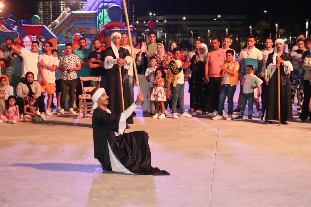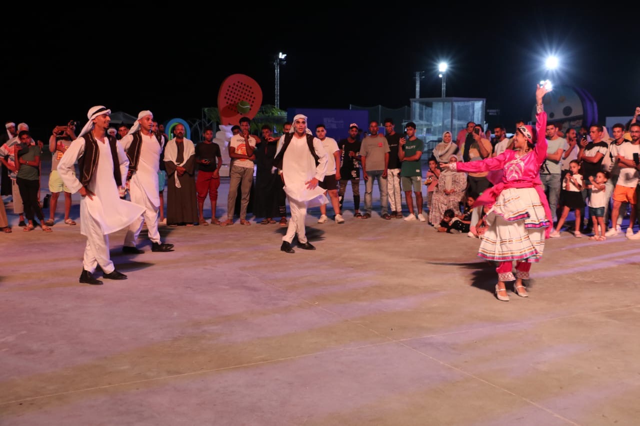 وبالممشي السياحي بمدينة العلمين الجديدة، قدمت فرقة الأنفوشي للفنون الشعبية بقيادة ياسر عثمان، رقصات الفن الشعبي السكندري المعبر عن تراث الثغر ومنها "الصيادين، عرب العامرية، كامب شيزار.