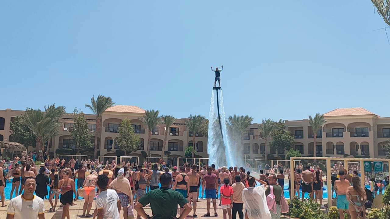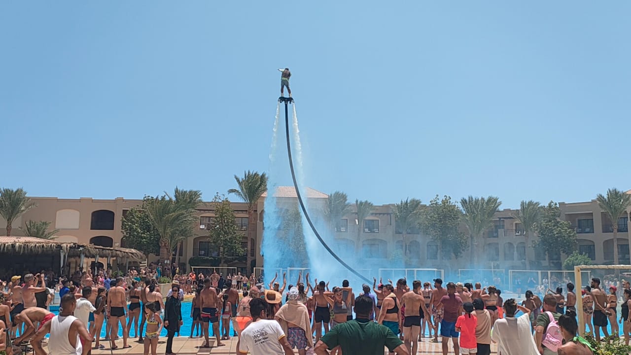 جذبت الألعاب المائية التي تنظمها فنادق الغردقة آلاف السياح على الشواطئ من جميع الجنسيات تزامنا مع فصل الصيف وارتفاع درجات الحرارة من خلال لعبة الفلاي بورد ولاقى ذلك قبول وإعجاب السياح الذين تفاعلوا على حركات الرجل الطائر في سماء الغردقة من خلال لعبة الفلاي بورد وحرصوا على التقاط الصور التذكارية ونشرها على السوشيال ميديا، مما يسهم في تنشيط السياحة على شواطئ الغردقة.