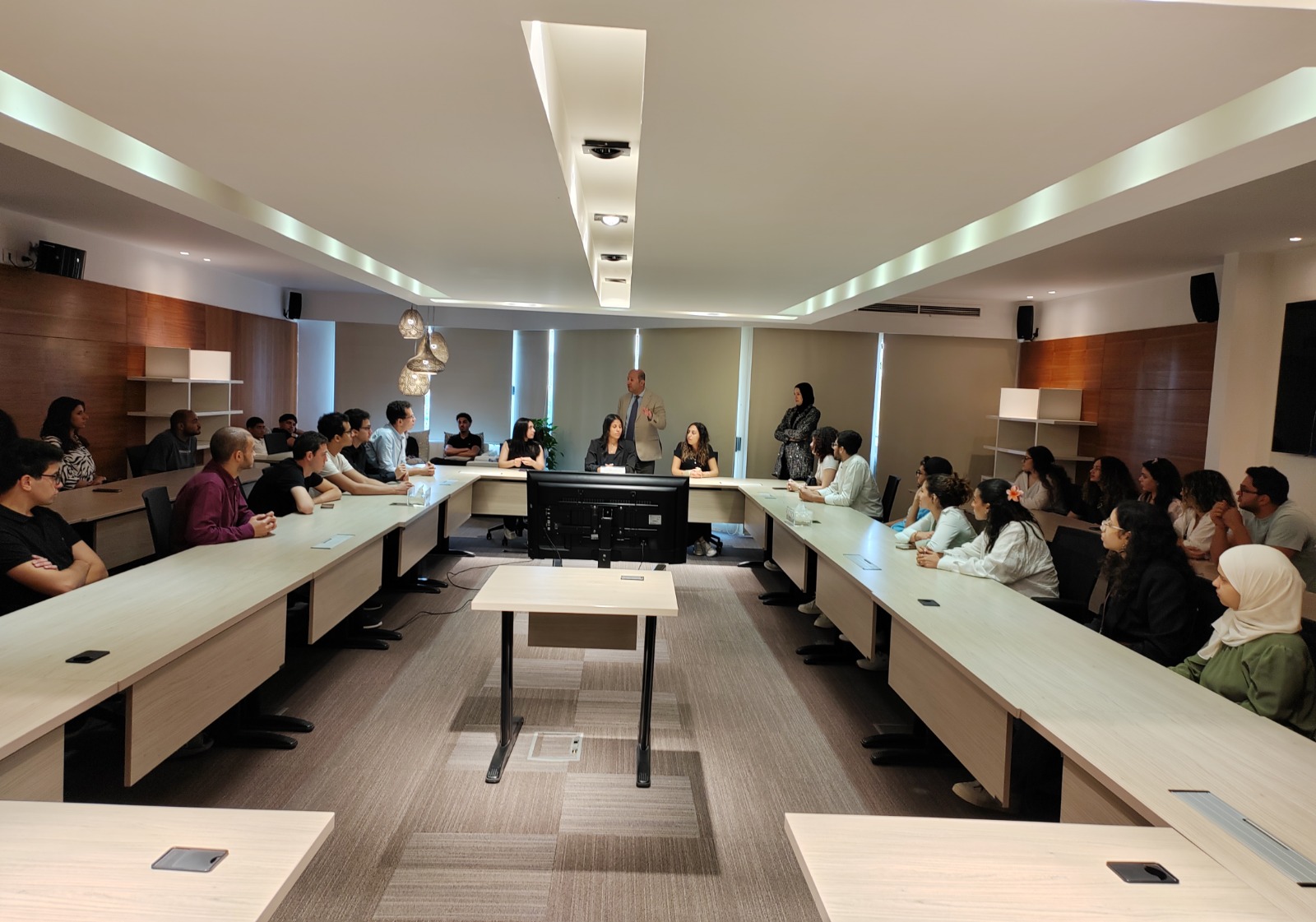 وأوضح  الدكتور سليم  للطلاب مفهوم التحكيم التجاري الدولي وأهميته فى تسوية المنازعات الدولية ، ثم أصصطحبهم في جولة داخل قاعات الاستماع وطرح عدد من  القضايا الواقعية التي تم الفصل فيها وتبع ذلك تقديم نبذة حول نشاط المركز وأهدافه والخدمات التي يقدمها.