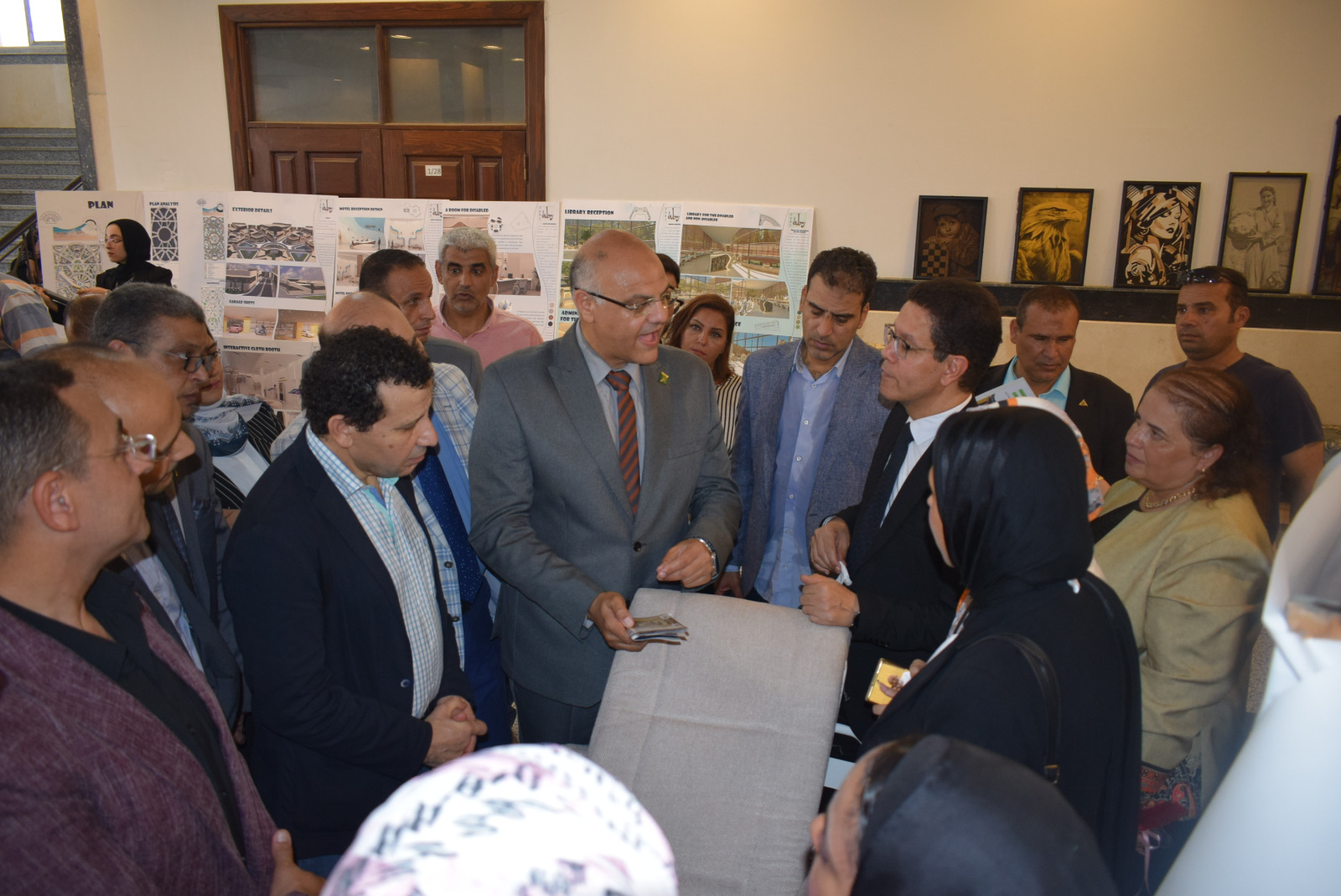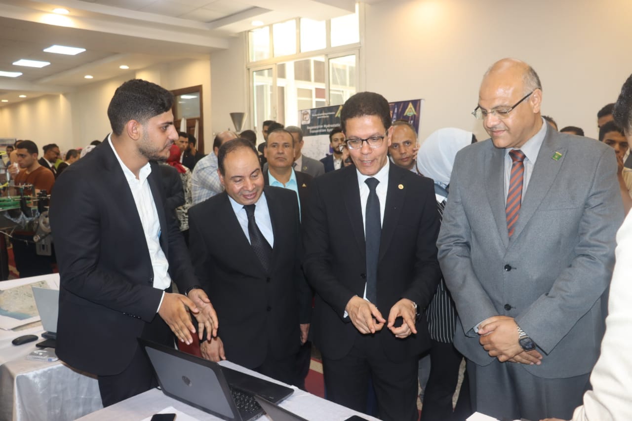 جاء ذلك بحضور الدكتور تامر سمير نائب رئيس الجامعة لشئون التعليم والطلاب، والدكتور السيد فوده نائب رئيس الجامعة لشئون خدمة المجتمع وتنمية البيئة، والدكتورة إيمان ريان نائب المحافظ، وعدد من عمداء الكليات المشاركة بالمعرض، وعدد من رجال الصناعة وأمين عام الجامعة والأمناء المساعدين وطلاب الجامعة.