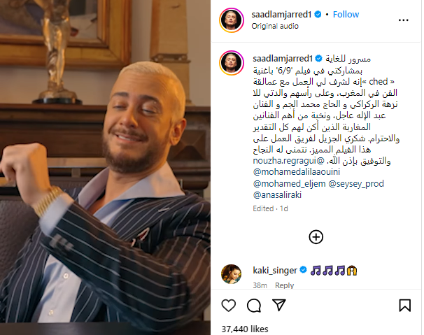 وأضاف: "أنه لشرف لي العمل مع عمالقة الفن في المغرب، وعلى رأسهم والدتي للا نزهة الركراكي والحاج محمد الجم والفنان عبد الإله عاجل، ونخبة من أهم الفنانين المغاربة الذين أكنّ لهم كل التقدير والاحترام".