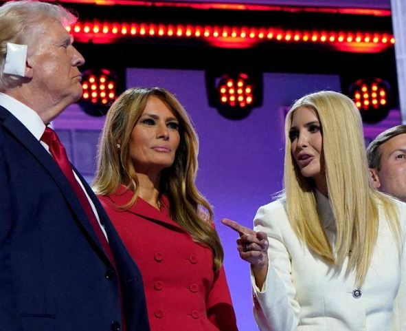 وبحسب صحيفة "ديلي ميل" البريطانية، تألقت زوجة ترامب، ميلانيا، التي تتطمح في لقب السيدة الأولى للمرة الثانية وابنته إيفانكا إلى جانبه في أول ظهور له منذ محاولة اغتياله السبت الماضي.