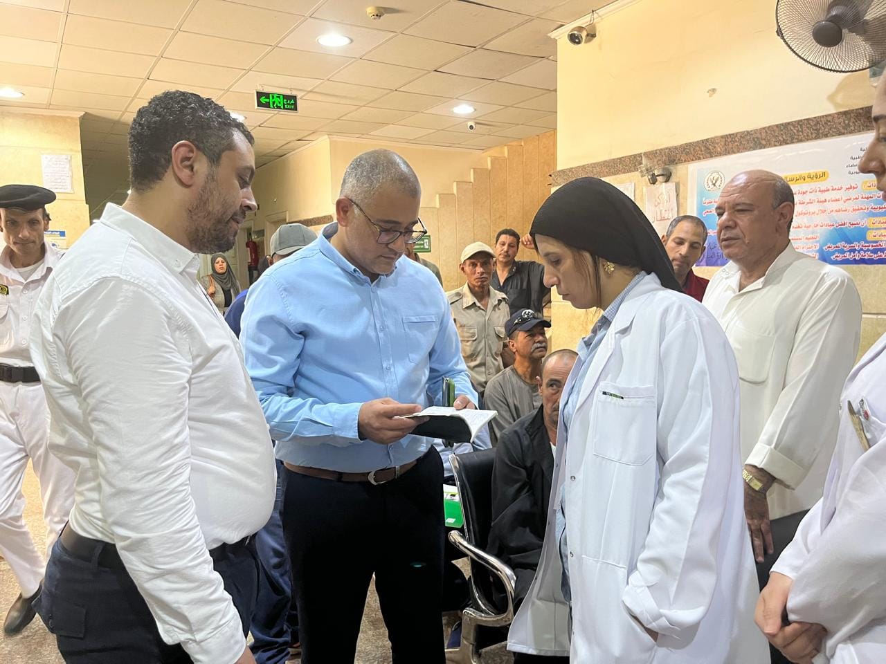 ووجه مدير الفرع بضرورة التوسع في العيادات المسائية ووضع خطة عمل خلال ٧٢ ساعة لتشغيل عيادات مسائية بمجموعة أخري من العيادات، وعمل كروت لتنظيم الدور، وإعادة توزيع العيادات الخارجية وغرف الكشف، ومواعيد معلنة لحضور الأطباء، وعمل كل دور بالعيادة كوحدة إدارية منفصلة لتسهيل الاجراءات، كحلول للقضاء علي ظاهرة التكدس والزحام بالعيادات الخارجية.