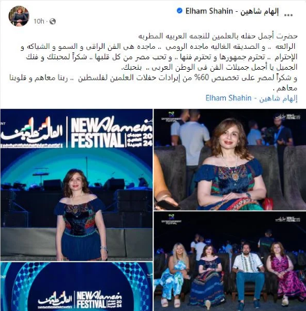 وتابعت: "وشكرًا لمصر على تخصيص 60% من إيرادات حفلات العلمين لفلسطين، ربنا معاهم وقلوبنا معاهم".