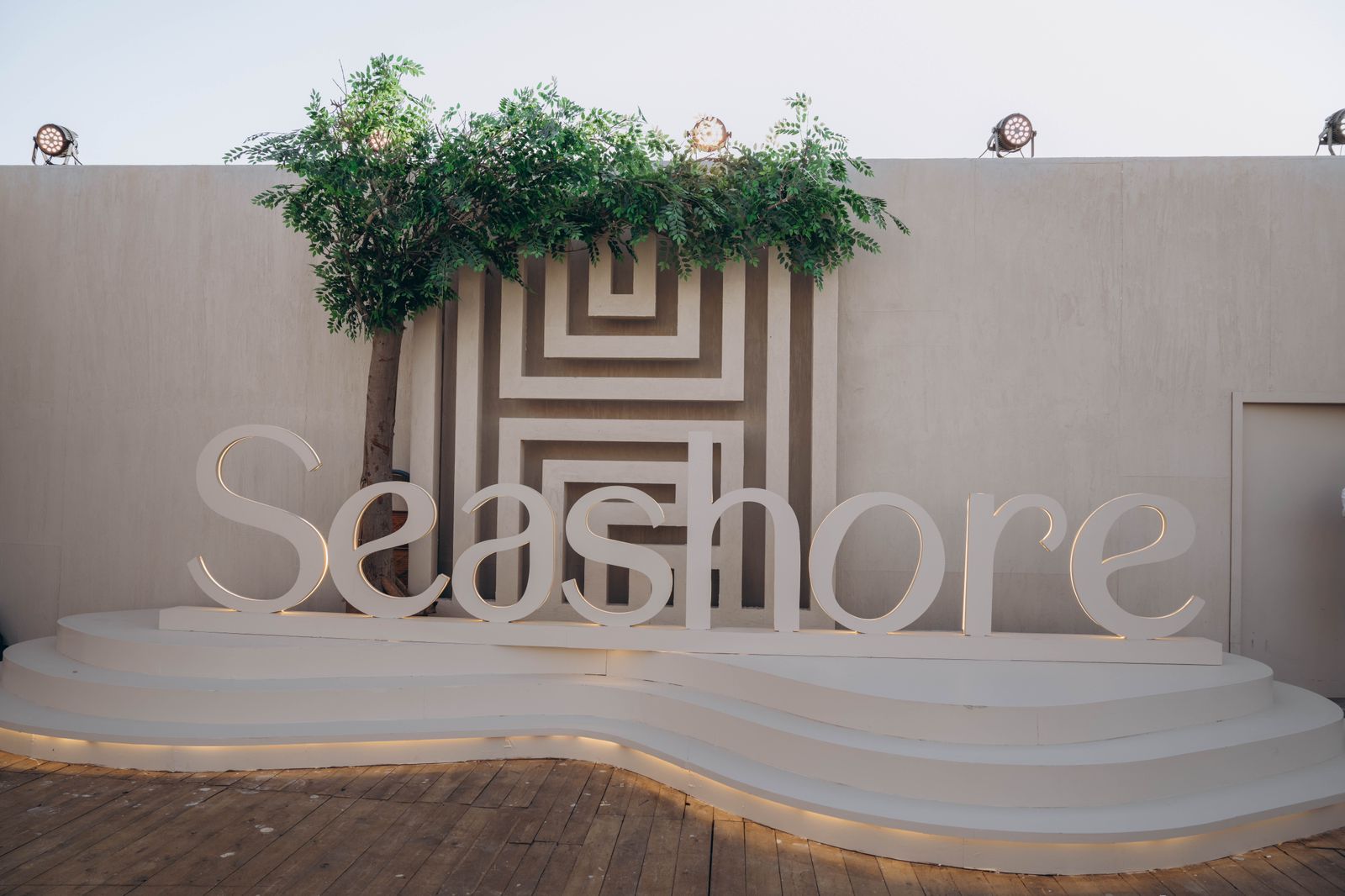 من ناحية التصميم، يتميز مشروع Seashore بتصميم عمراني فريد يعتمد على أسلوب المصاطب المتدرجة بارتفاع 32 مترًا، مما يوفر إطلالات رائعة لجميع الوحدات السكنية على البحر، الذى يمتد على مسطح 550 مترًا، كما تطل بعض الوحدات أيضًا على البحيرات وحمامات السباحة، حيث يتضمن نحو 25 مسبحًا متنوع المساحات ، وقد تم تصميم المخطط الرئيسي للمشروع من قبل المكتب الاستشاري العالمي EDSA ، بينما تولت شركة SB Architects العالمية التصميم المعماري مما يضمن جودة عالية وتصميمات متميزة تعزز من جاذبية المشروع.