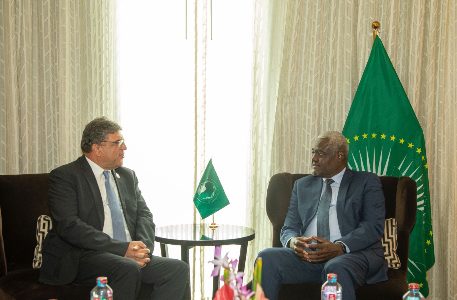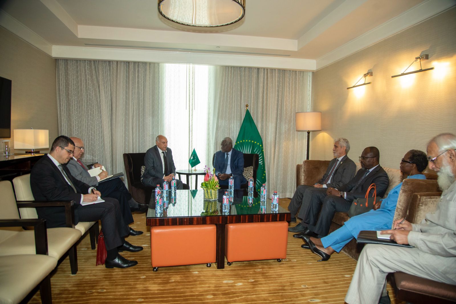 وأضاف البيان أن الطرفين بحثا عددا من المواضيع التي تتعلق بالاستحقاقات المرتقبة داخليا على مستوى الاتحاد الإفريقي وخارجيا بين الاتحاد الإفريقي وشركائه الدوليين.