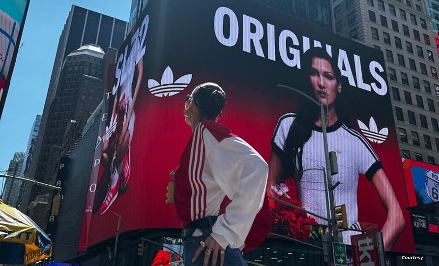 وتم الترويج لحذاء SL72، الذي وصفته أديداس بأنه كلاسيكي خالد، بواسطة حديد، وهي أمريكية من أصول فلسطينية.