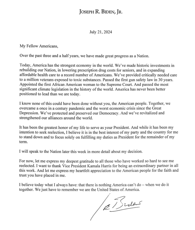 بيان انسحاب بايدن من الإنتخابات الرئاسية الأمريكية