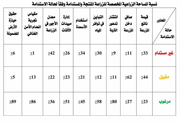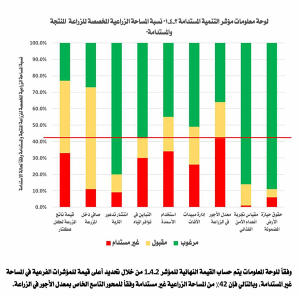 - 91% من الأراضي الزراعية منتجة ومستدامة (تربة جيدة غير متدهورة).