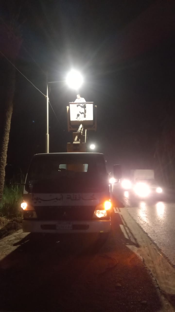 مواصلة تركيب كشافات إنارة الطرق بمراكز أسيوط