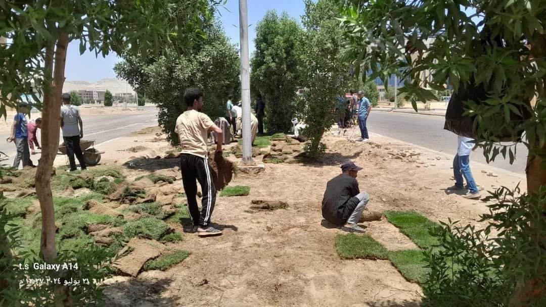 ثم قام تفقد أعمال زراعه وترقيع القطعيات في جزيره الصناعيه عمليه المطار جمعيه جهينه وطالب بضرورة الاهتمام بالرى بصورة دائمه لإعطاء النجيله اللون الاخضر وإظهار المدينه فى ابهى صورها ولارتفاع درجات الحرارة وطالب بضرورة التسميد حسب المواعيد المحدده مسبقا مع إدارة الزراعه