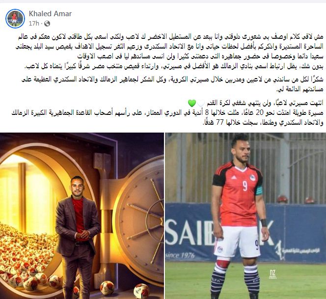 خالد قمر يعلن اعتزاله: لن انسى جماهير الاتحاد السكندري