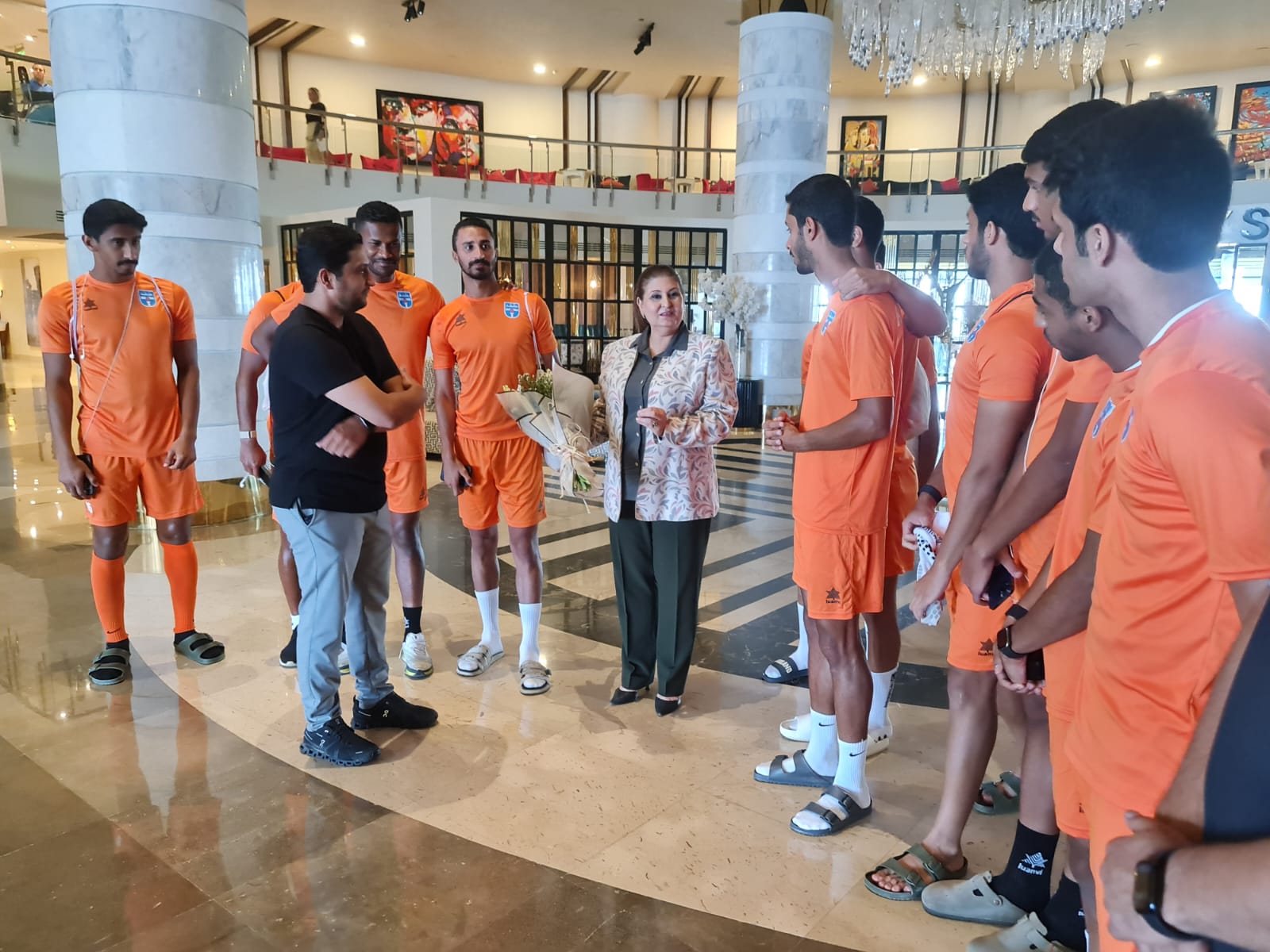 من جانبه، عبر الكابتن فيصل المحطب المدير الفنى للفريق وكافة أفراد البعثة عن شكرهم وتقديرهم العميق للدولة المصرية ووزارة الشباب والرياضة بقيادة للدكتور أشرف صبحي، علي الإهتمام بالموضوع، واعطاء توجيهاته لتذليل كافة العقبات.