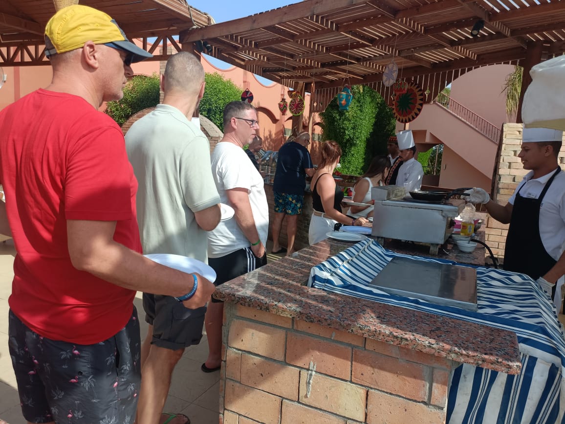وخصصت إدارة الفنادق والمنتجعات السياحية بمرسى علم شيف مخصص لعمل الطعمية الفريش وبجوارها قدرة الفول وشيف خباز لصنع العيش البلدي الطازج، ولاقى ذلك إقبال السائحين وإعجابهم بمذاق الطعمية وحرصوا على التقاط الصور التذكارية مع الشيف أثناء صنعها وصور أخرى لقدرة الفول وهم في غاية السعادة والبهجة.