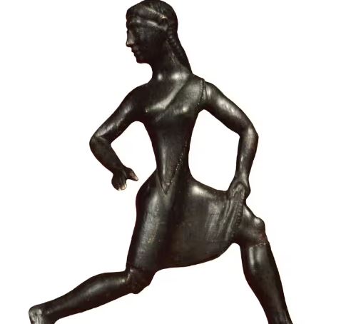 كانت الألعاب القديمة مقتصرة على الرجال فقط، ولكن النساء كن يعقدن نسختهن الخاصة من الألعاب في موقع الألعاب المقدس أوليمبيا. وكانت هذه الألعاب تقام كل أربع سنوات تكريماً لهيرا زوجة زيوس، وكانت تتضمن حدثاً واحداً فقط: الجري. وربما يصور هذا التمثال البرونزي لفتاة صغيرة لاعبة رياضية في الألعاب الهيراينية. كانت ترتدي فستاناً قصيراً، وترفعه لإظهار عضلاتها. وكانت هذه طريقة رائدة لتصوير الطاقة والحركة البشرية. ويمكنك أن تستشعر في هذا التمثال سطحية مصرية تقريباً، ولكن هناك أيضاً شيئاً ثورياً في الشعور بالحرية التي تبديها وهي تستدير لتنظر خلفها.
