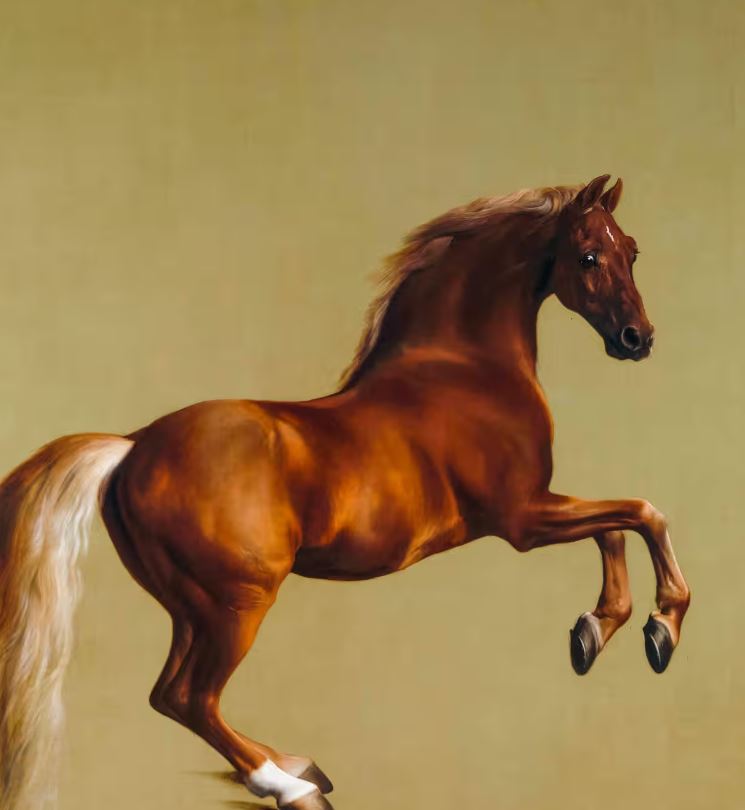 استخدم البشر الخيول منذ زمن طويل في الرياضة، بدءًا من بطولات الفروسية وحتى مسابقات الفروسية الأوليمبية اليوم. وهذه الصورة لحصان سباق مشهور هي واحدة من أفضل اللوحات التي وثقت رياضة الفروسية على الإطلاق.