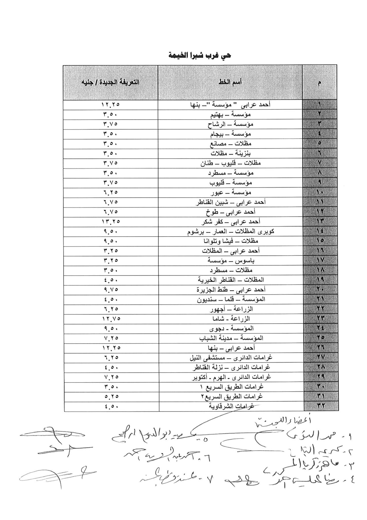 أصدر اليوم المهندس ايمن عطية محافظ القليوبية قرار رقم (720) لسنة 2024 الخاص بتعديل التعريفة الجديدة والمقررة لركوب سيارات الأجرة والسرفيس بدائرة المحافظة ، وذلك علي إثر زيادة أسعار البنزين والسولار الذي أقره السيد المهندس/وزير البترول والثروة المعدنية.