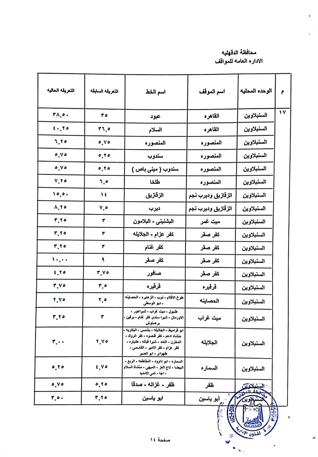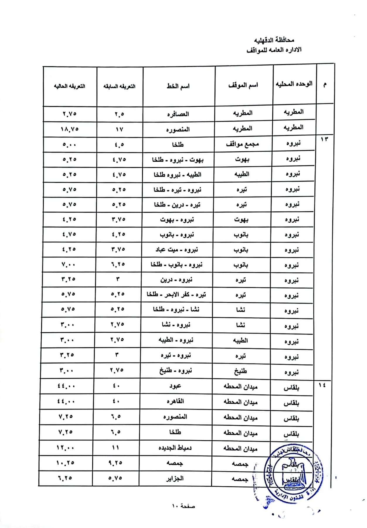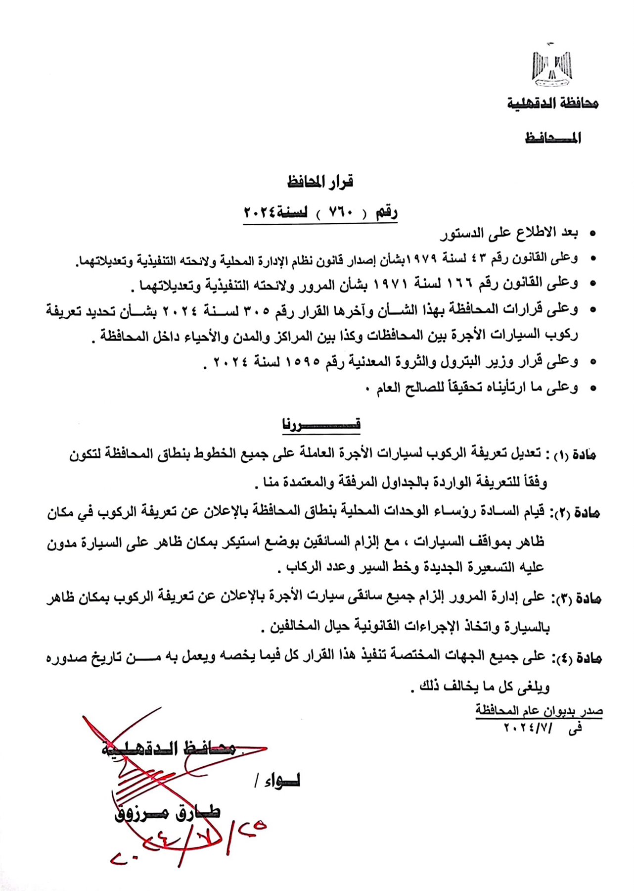 أعتمد اللواء طارق مرزوق محافظ الدقهلية اليوم الخميس زيادة تعريفة الأجرة على جميع المواصلات العامة الخطوط الداخلية والخارجية بنطاق المحافظة بنسبة 10% ، وتشمل ( سيارات الميكروباص و السرفيس دون سيارات التاكسي ) عقب قرار زيادة أسعار السولار والبنزين دون أي زيادة في الغاز الطبيعي .