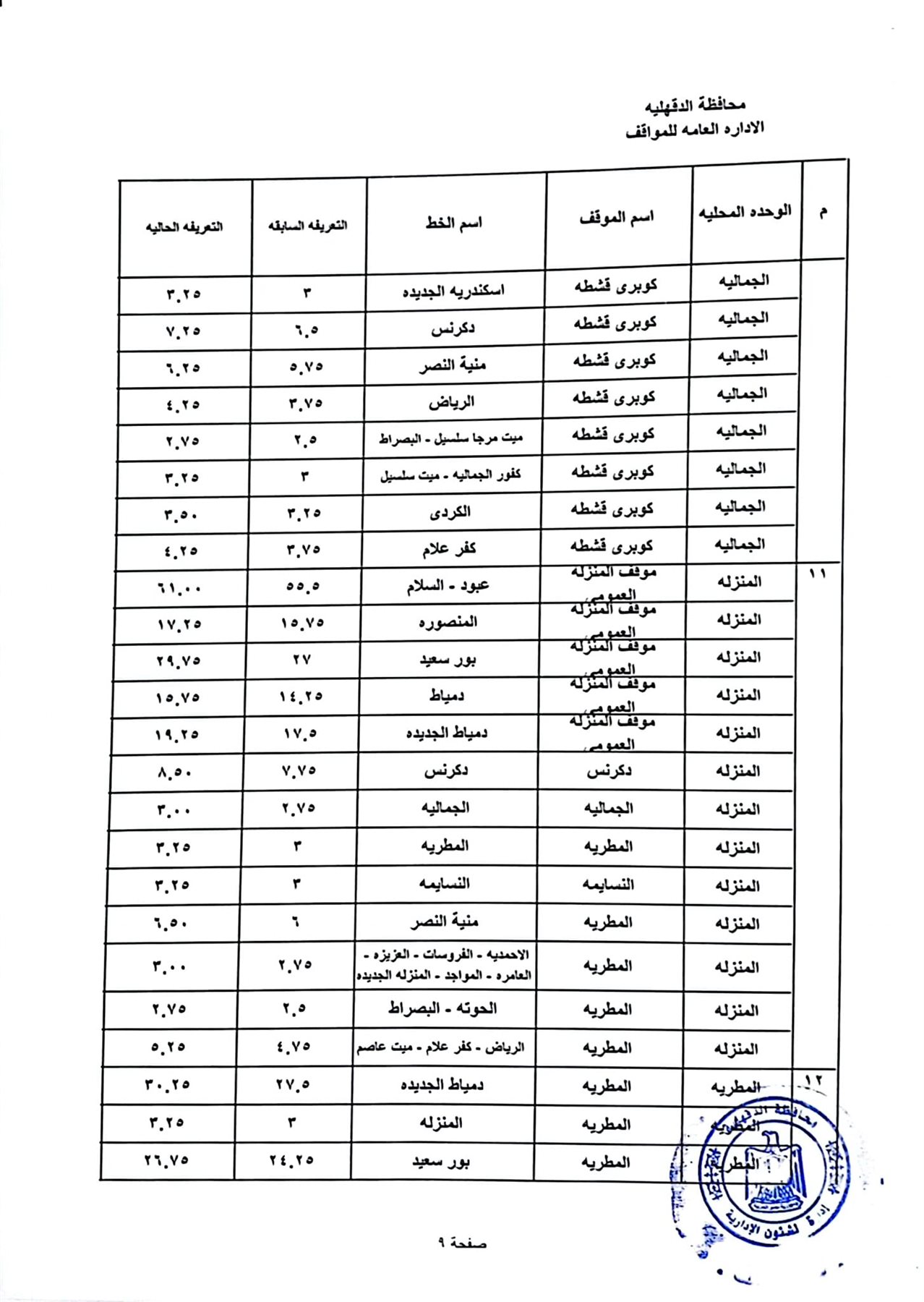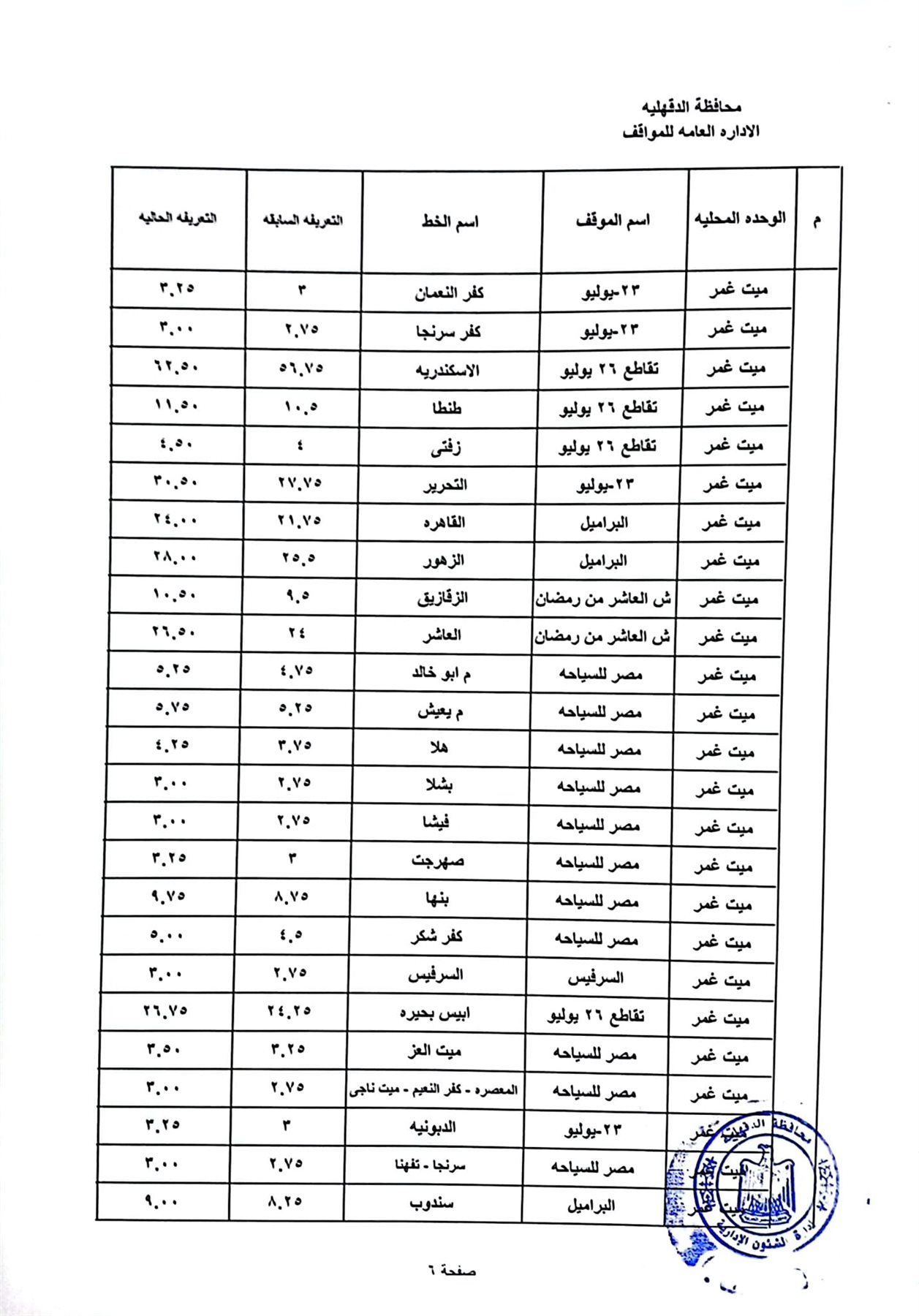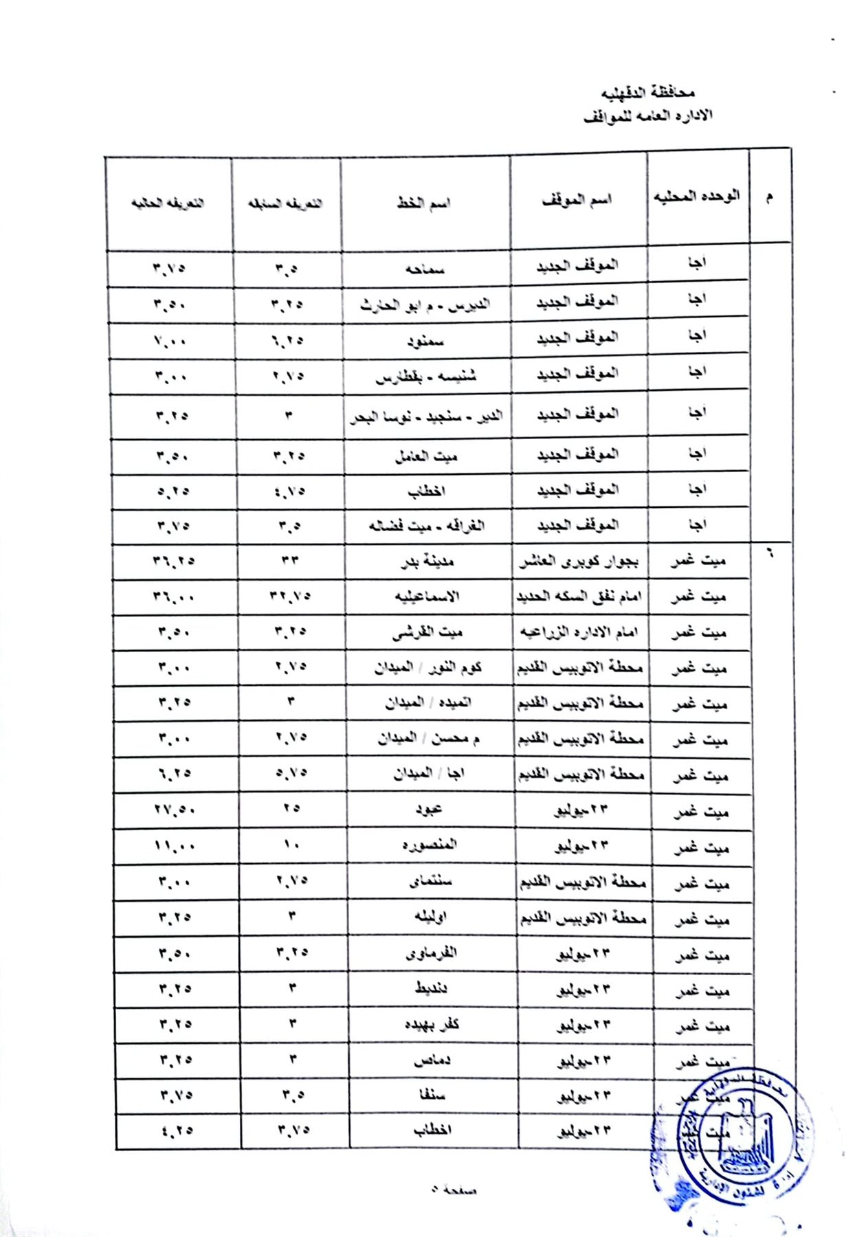 محافظ الدقهلية يعتمد تعريفة الأجرة الجديدة على جميع المواصلات العامة