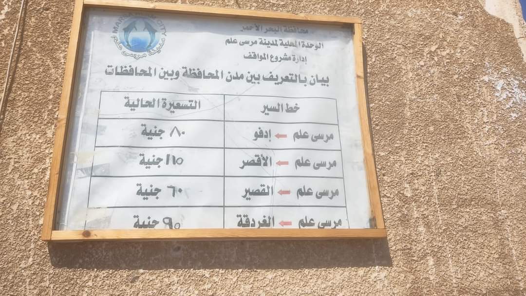 كلف اللواء حازم خليل رئيس مدينة مرسى علم  ضياء سليم سكرتير المدينة وإدارة المواقف وإدارة المتابعة ، لمتابعة انتظام سير العمل والالتزام بالتعريفة الجديدة المقررة لخطوط السير بين المدينة والمحافظات والمدن المجاورة.