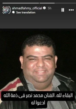 نعى الفنان أحمد فهمي، الفنان محمد نصر، عبر خاصية الاستوري على حسابه بموقع تبادل الفيديوهات والصور "إنستجرام".