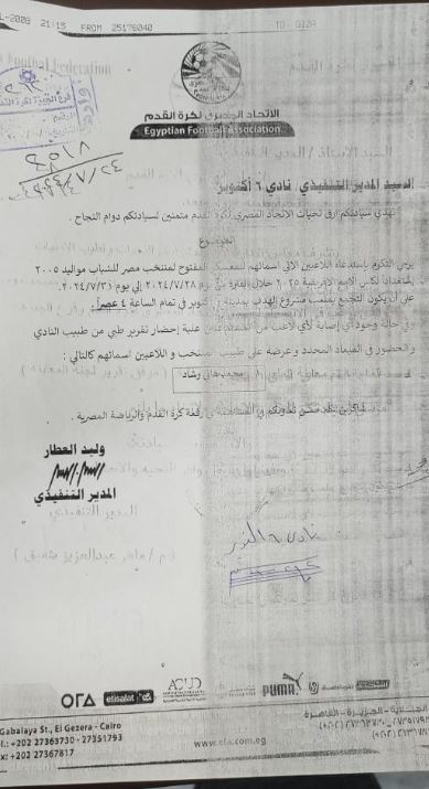 ينتظم محمد هاني رشاد مهاجم فريق 6 أكتوبر في  معسكر منتخب الشباب مواليد 2005 والذي يقوده وائل رياض شيتوس بعدما تم استدعاء المهاجم الشاب للانخراط في المعسكر  الذي  سينطلق بعد غدا السبت في مشروع الهدف خلال الفترة من 27  يوليو الجاري وحتى 31 من نفس الشهر.. وهو احد المعسكرات التي يقيمها الجهاز الفني استعدادا لبطولة أمم أفريقيا للشباب والمقرر إقامتها العام المقبل 2025.