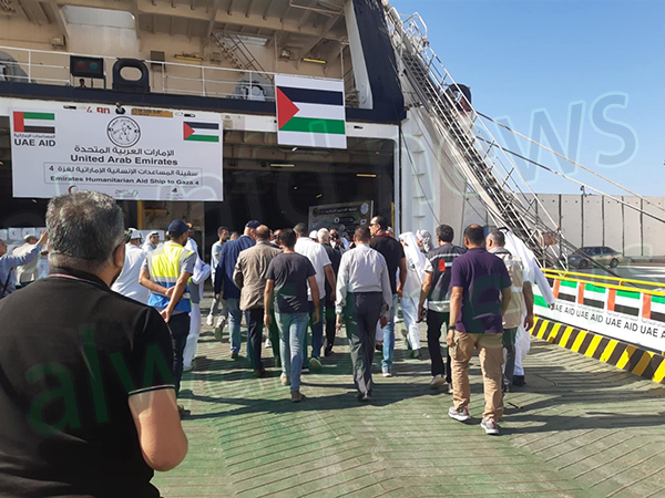 وصلت أكبر سفينة مساعدات لغزة، تابعة لدولة الإمارات، الى ميناء العريش، بحمولة تقدر بنحو 5340 طناً من المواد الإنسانية.