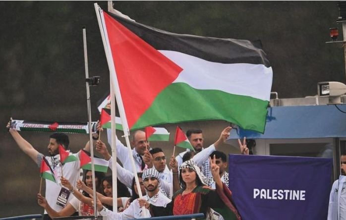 وظهرت بعثة فلسطين في حفل أولمبياد باريس 2024، بالوشاح الفلسطيني وعلامة النصر، إذ تقاسمت البعثة المكونة من 8 لاعبين فقط مركبًا مع بنما وبابوا غينيا الجديدة وباراجواي.