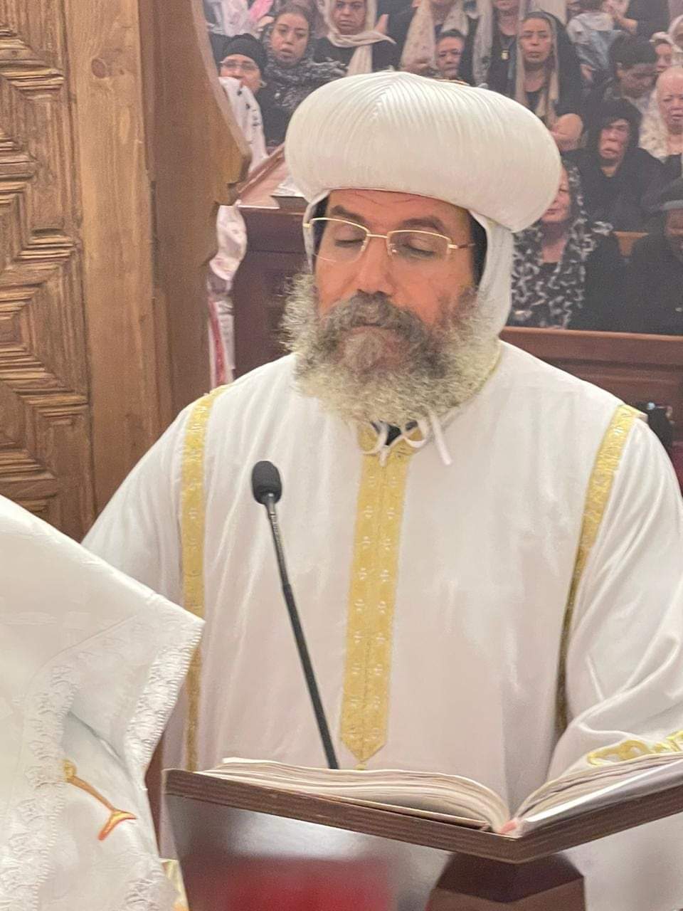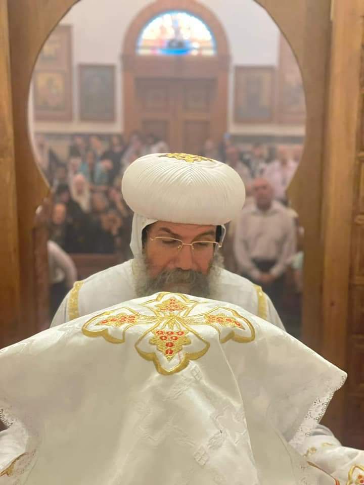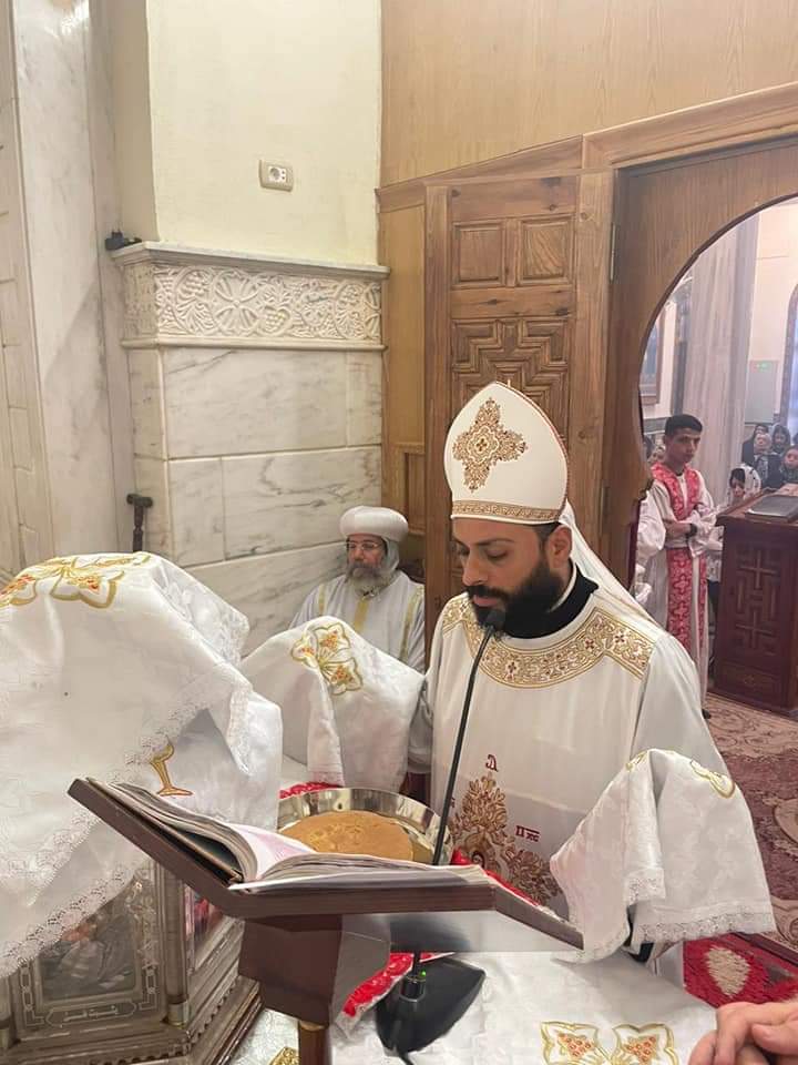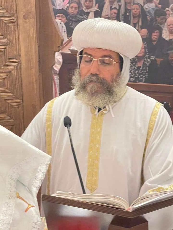الأنبا صليب يشارك في قداس الـ40 لوالدة الأب بطرس نجيب.. صور