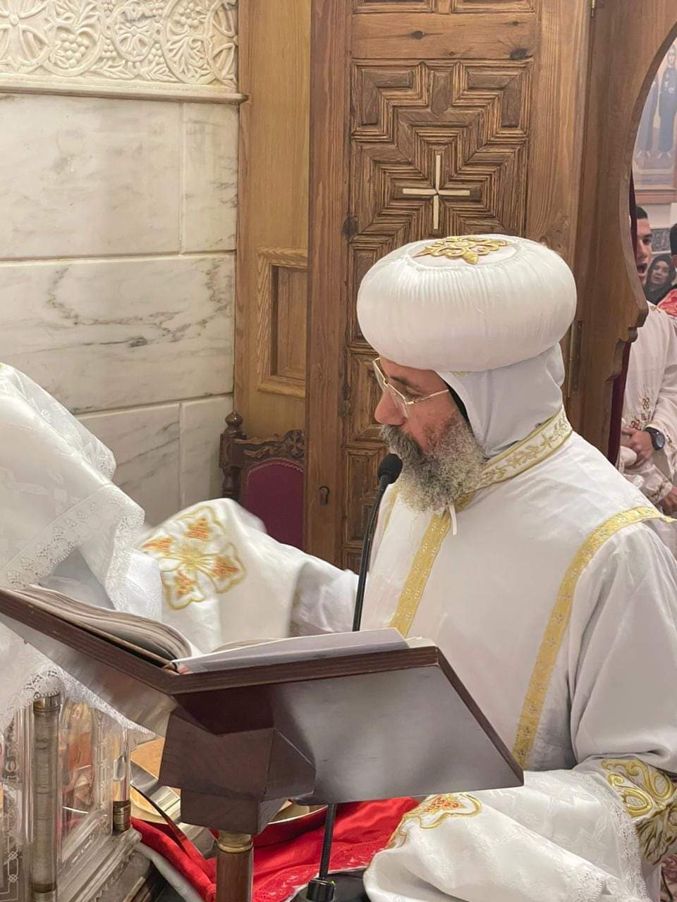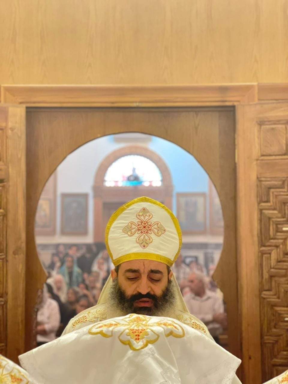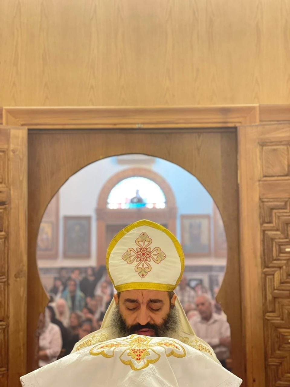 الأنبا صليب يشارك في قداس الـ40 لوالدة الأب بطرس نجيب.. صور