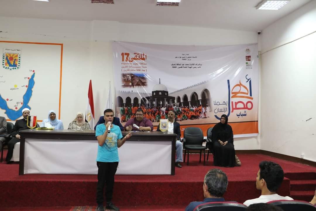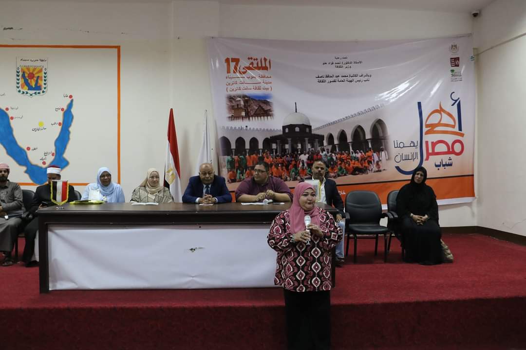 شهدت الوحدة المحلية بمدينة سانت كاترين بمحافظة جنوب سيناء، انطلاق فعاليات الملتقى الثقافي السابع عشر لشباب المحافظات الحدودية ضمن مشروع "أهل مصر"، المقام برعاية دكتور  أحمد فؤاد هنو، وزير الثقافة، وتنظمه الهيئة العامة لقصور الثقافة بإشراف الكاتب محمد عبد الحافظ ناصف، نائب رئيس الهيئة، تحت شعار "يهمنا الإنسان"، باستضافة 110 شباب وفتيات من المحافظات الحدودية: شمال سيناء، جنوب سيناء، أسوان،  البحر الأحمر"الشلاتين وأبو رماد وحلايب"، الوادي الجديد، مرسى  مطروح، والأسمرات "القاهرة".