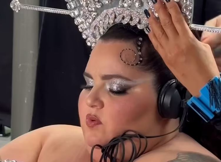 شارك في المشهد عارضات أزياء وراقصات وأيقونات الموضة بعاصمة النور والملائكة باريس حيث تجمعوا على جسر فوق نهر العاصمة حول طاولة، والتي كانت بمثابة منصة عرض أزياء، وفي الوسط كانت باربرا، التي ارتدت تاجًا على شكل هالة ومع فستان باللون الأزرق بتوقيع فلافيو خوان نونيز والمصمم لوران تيجو.