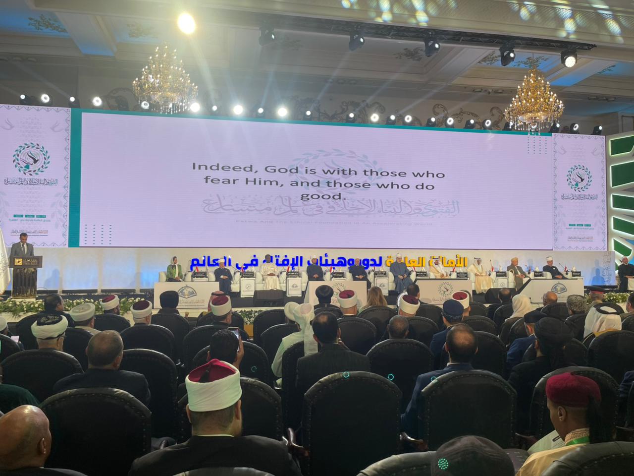 شهد مؤتمر الأمانة العامة لدور وهيئات الإفتاء في العالم، المنعقد تحت رعاية رئاسة الجمهورية ومظلة دار الإفتاء المصرية، عرض فيلم تسجيلي عن أعمال المؤتمر العالمي في نسخته التاسعة، الذي تم افتتاح فعالياته منذ قليل، ويستمر على مدار يومي 29 و30 يوليو تحت عنوان «الفتوى والبناء الأخلاقي في عالم متسارع»، وبحضور وفود من أكثر من مائة دولة يمثلون كبار الشخصيات الرسمية والمنظمات الأممية، وكبار رجال الدين من المفتين والوزراء والشخصيات العامة، وكذلك بمشاركة نخبة من القيادات الدينية وممثلي دُور الإفتاء على مستوى العالم.