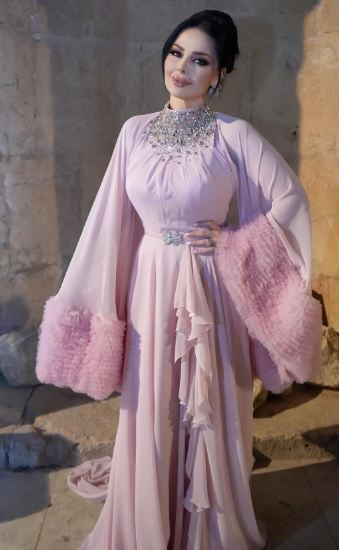 وتألقت ديانا كرزون في أحدث ظهور لها اثناء احيائها حفلتها الغنائية، حيث أرتدت فستان طويل فضفاض، بأكمام طويلة واسعه، ولياقة عالية، صمم من قماش الحرير باللون الروز الفاتح وطرز من الأمام بحبات الكريستال توسط الفستان حزام رفيع حول خصرها.