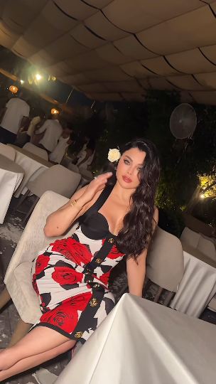 وتألقت هيفاء وهبي بإطلالة عصرية مفعمة بزهور الحب من بستان الربيع، صمم الفستان من قماش ناعم بارضية بيضاء مطبوع بزهور حمراء، ويعود تصميم الفستان لحقبة السبعينيات لانها بداية البهجة في الموضة وأسلوب الحياة.