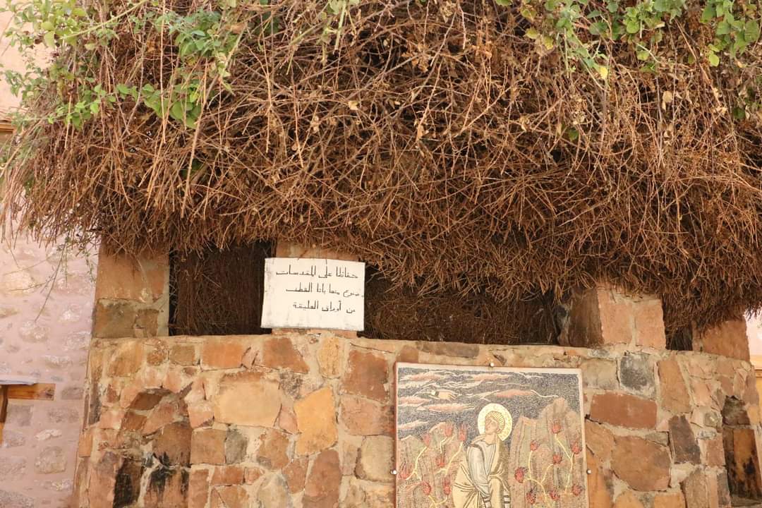 وأشار أنه يضم بداخله شجرة العليقة في أقصى الركن الشرقي للدير وهي شجرة صغيرة متعددة الأفرع ذات أشواك وأوراقها خضرة صغيرة دائمة وعديمة الثمار، تندرج تحت الشجر دائم الخضرة من نوع العليق، وجرت عدة محاولات لإعادة استنباتها ولكنها فشلت مما يؤكد أنها شجرة غير تقليدية.