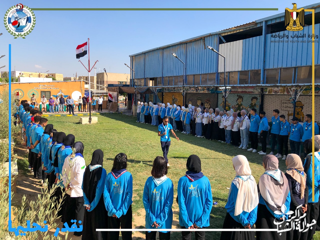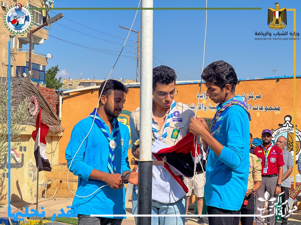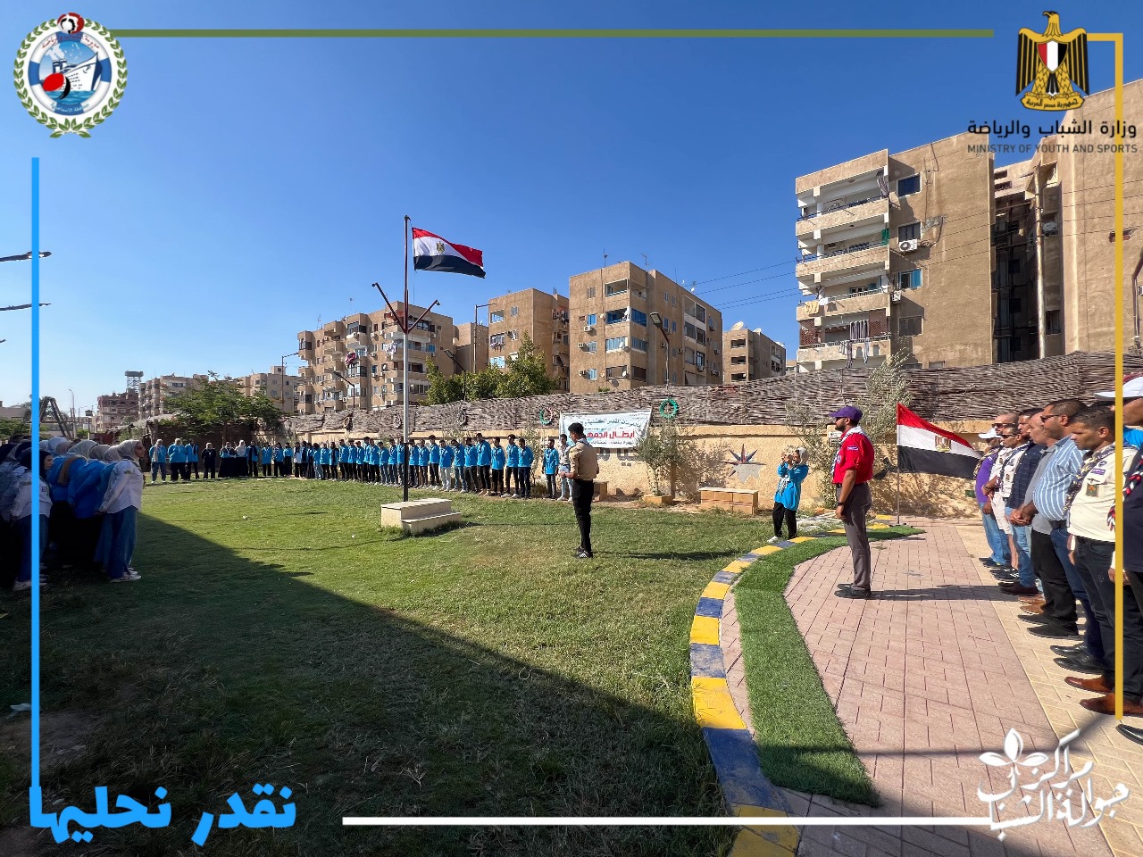 جاء ذلك برعاية الدكتور أشرف صبحى وزير الشباب والرياضة، واللواء طيار أركان حرب أكرم محمد جلال محافظ الإسماعيلية، وتوجيهات الدكتور إيهاب صلاح مدير عام المديرية، والدكتور طه حفني مسئول البرامج بالإدارة العامة بوزارة الشباب والرياضة، واشراف كابتن رمضان الطيب مدير إدارة الشباب، وتنفيذ نعمه الإسناوي منسق الجوالة بمديرية الشباب والرياضة والقائد محمد حسن محمد قائد مكتب الجوالة بالمديرية.