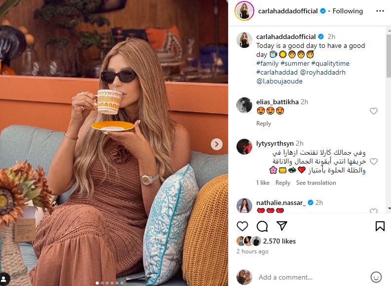 اعتادت الإعلامية اللبنانية كارلا حداد على مشاركة متابعيها أحدث إطلالاتها عبر حسابها الشخصي بموقع الإنستجرام.