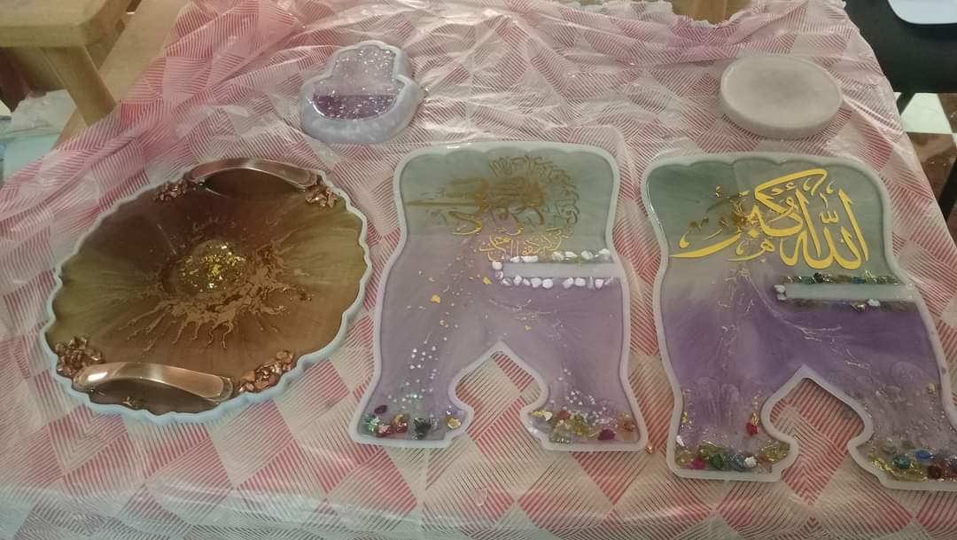 كما عرّف المتدربين بالأدوات والألوان المستخدمة ومنها ألوان المايكا، وبودرة الأكريليك، وطريقة الصب في القوالب الجاهزة، مشيرا إلى إمكانية تزيين العمل بالإكسسوارات والمعادن والأحجار المنتقاة بعناية لإضفاء لمسة جمالية، وضمان أفضل النتائج.