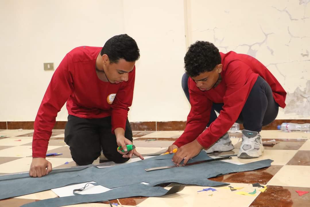 كما استمرت فعاليات ورشة المشغولات الجلدية، وعرفت خلالها المدربة أسماء خميس، كيفية قص الجلد وتزويده برسومات لتصميم حقيبة ظهر.