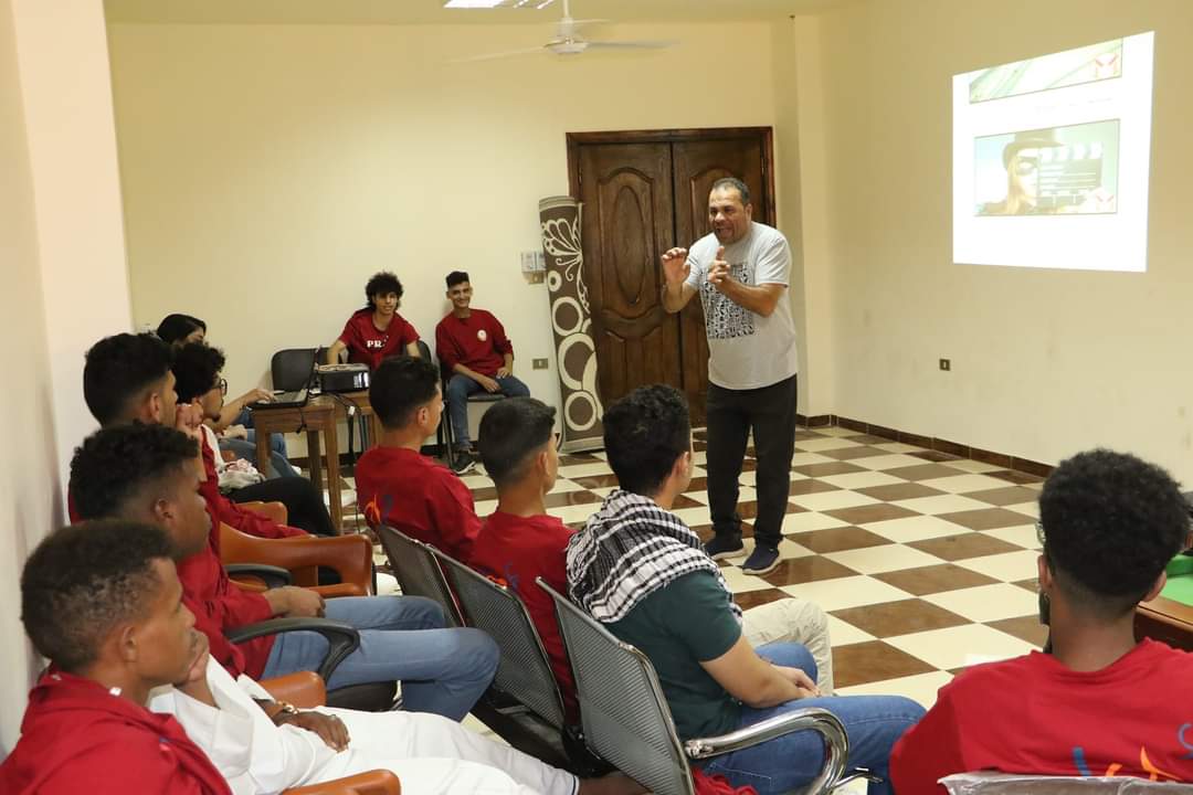 فيما قام كل من المدرب أحمد راضي، وحسن خليل، خلال ورشة الأداء المسرحي بتعريف الشباب على الحركة المسرحية، وأساليب الإلقاء وكيفية حفظ النص، مع توزيع الأدوار على المشاركين في العمل الختامي.