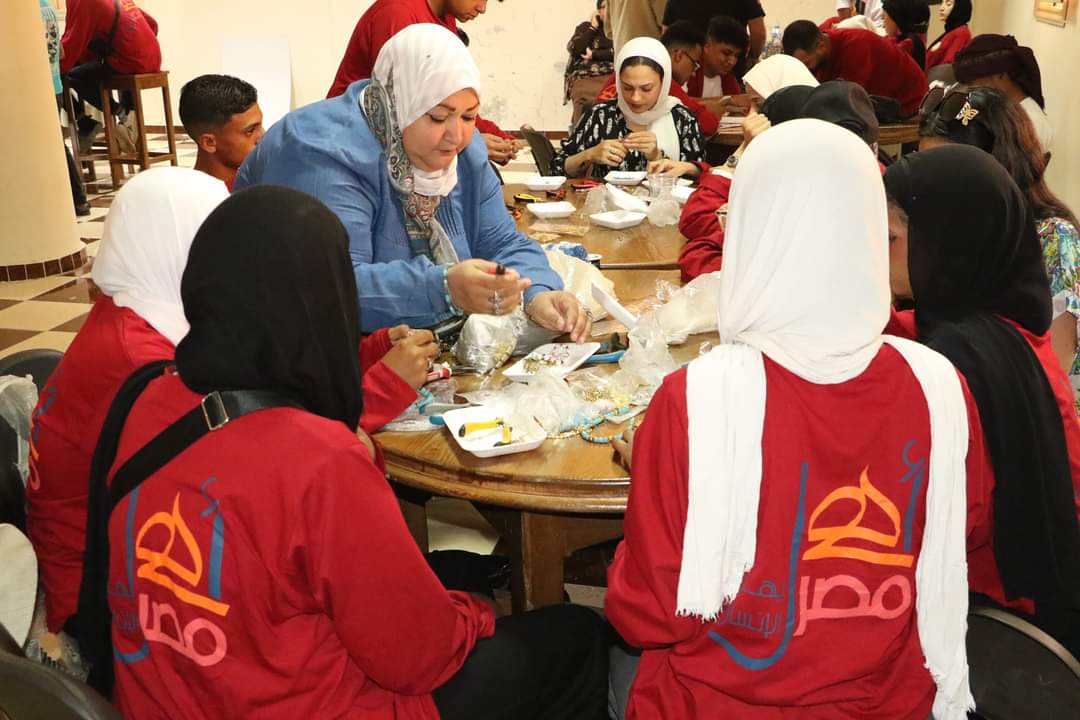 بدورها واصلت المدربة شيرين عفيفي تدريب المشاركين على كيفية تصميم أشغال يدوية بالخرز كالأساور والكوليهات.
